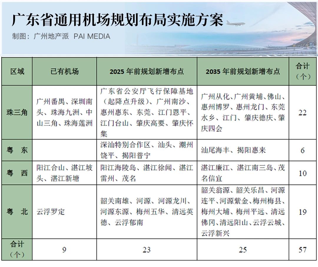 加上目前已有的9个通用机场,到2035年将累计建成57个机场。